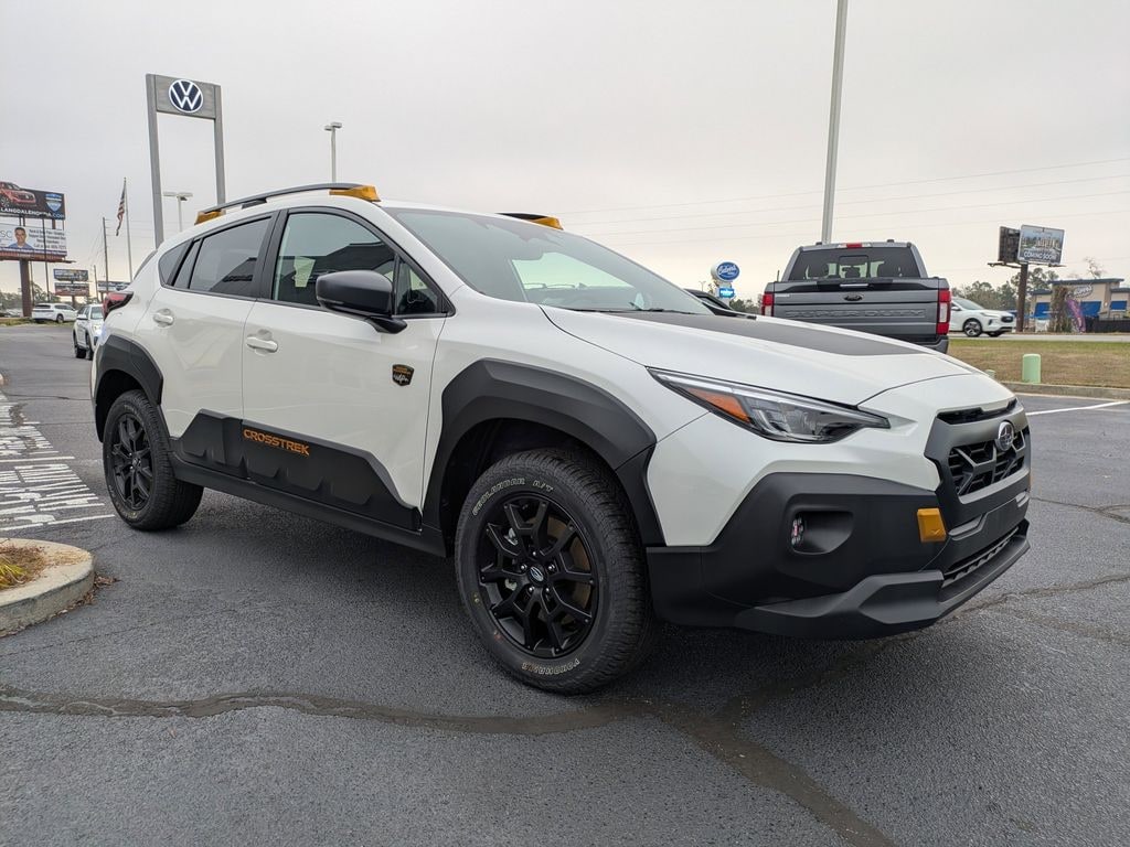 AWD 10-Way Power Driver's Seat, 4-Wheel Disc Brakes, 6 Speakers, ABS brakes, Air Conditioning, Alloy wheels, Anti-whiplash front head restraints, Auto High-beam Headlights, Auto-Dimming Exterior Mirror with Approach Light, Auto-Dimming Mirror with Compass and HomeLink, Automatic temperature control, Brake assist, Bumpers: body-color, Driver door bin, Driver vanity mirror, Dual front impact airbags, Dual front side impact airbags, Electronic Stability Control, Emergency communication system: MySubaru Companion (5-years free), Exterior Parking Camera Rear, Four wheel independent suspension, Front anti-roll bar, Front Bucket Seats, Front Center Armrest, Front dual zone A/C, Front fog lights, Front reading lights, Fully automatic headlights, Harman/Kardon Audio and Power Moonroof and Power Driver Seat, Heated door mirrors, Heated Front Bucket Seats, Heated front seats, Heated steering wheel, Illuminated entry, Knee airbag, Leather Shift Knob, Leather steering wheel, LED Upgrade, Low tire pressure warning, Occupant sensing airbag, Outside temperature display, Overhead airbag, Overhead console, Panic alarm, Passenger door bin, Passenger vanity mirror, Power door mirrors, Power Moonroof, Power steering, Power windows, Radio data system, Radio: Subaru 11.6" Multimedia Plus System, Rear anti-roll bar, Rear Bumper Cover - Wilderness, Rear seat center armrest, Rear Seatback Protector, Rear side impact airbag, Rear window defroster, Rear window wiper, Remote keyless entry, Security system, Speed control, Speed-sensing steering, Split folding rear seat, Spoiler, Steering wheel mounted audio controls, Tachometer, Telescoping steering wheel, Tilt steering wheel, Traction control, Trip computer, Turn signal indicator mirrors, Variably intermittent wipers, Wheels: 17" x 7.0" J Matte Black Aluminum-Alloy, Wilderness Package, Wilderness StarTex Upholstery. 2026 Subaru Crosstrek Wilderness