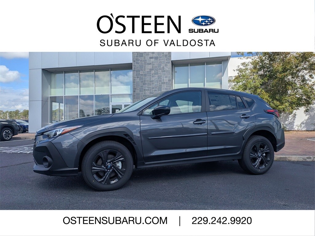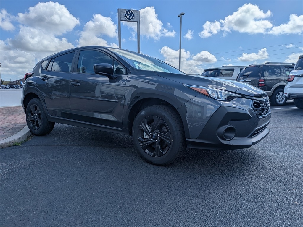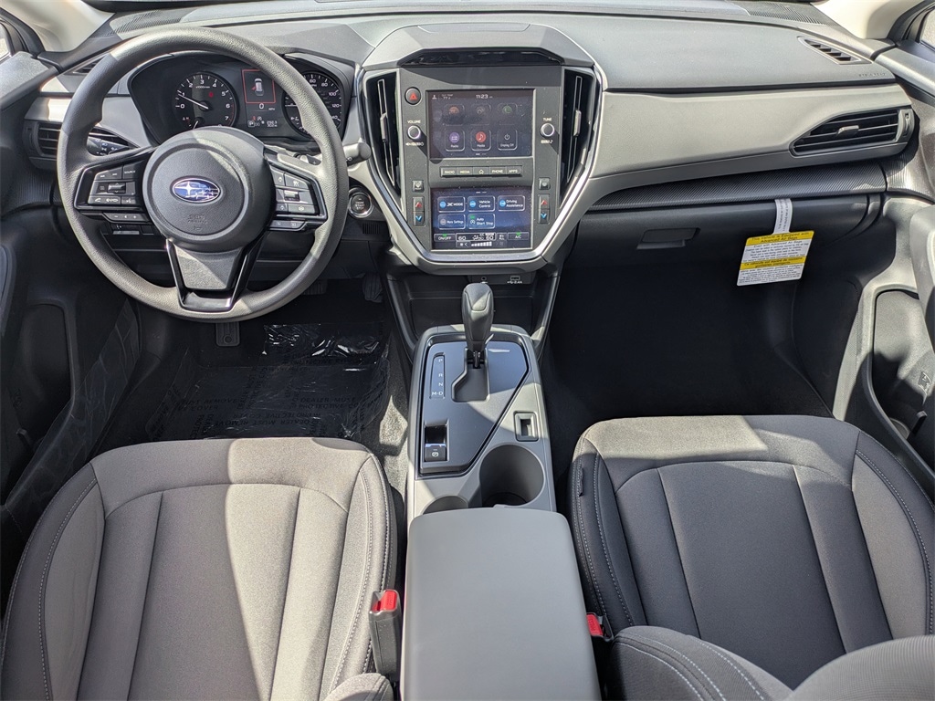 AWD 4 Speakers, 4-Wheel Disc Brakes, ABS brakes, Air Conditioning, Alloy wheels, AM/FM radio: SiriusXM, Anti-whiplash front head restraints, Auto High-beam Headlights, Auto-Dimming Mirror with Compass and HomeLink, Automatic temperature control, Brake assist, Bumpers: body-color, Cloth Upholstery, Convenience Package #1, Driver door bin, Driver vanity mirror, Dual front impact airbags, Dual front side impact airbags, Electronic Stability Control, Exterior Parking Camera Rear, Four wheel independent suspension, Front anti-roll bar, Front Bucket Seats, Front Center Armrest, Front dual zone A/C, Front reading lights, Fully automatic headlights, Illuminated entry, Knee airbag, Low tire pressure warning, Occupant sensing airbag, Outside temperature display, Overhead airbag, Overhead console, Panic alarm, Passenger door bin, Passenger vanity mirror, Power door mirrors, Power steering, Power windows, Radio data system, Radio: Subaru Dual 7.0" Multimedia System, Rear anti-roll bar, Rear Bumper Cover, Rear side impact airbag, Rear window defroster, Rear window wiper, Remote keyless entry, Security system, Speed control, Speed-sensing steering, Split folding rear seat, Spoiler, Standard Model, Steering wheel mounted audio controls, Tachometer, Telescoping steering wheel, Tilt steering wheel, Traction control, Trip computer, Variably intermittent wipers, Wheels: 17" x 7.0" J Dark Gray Aluminum-Alloy. 2026 Subaru Crosstrek Base