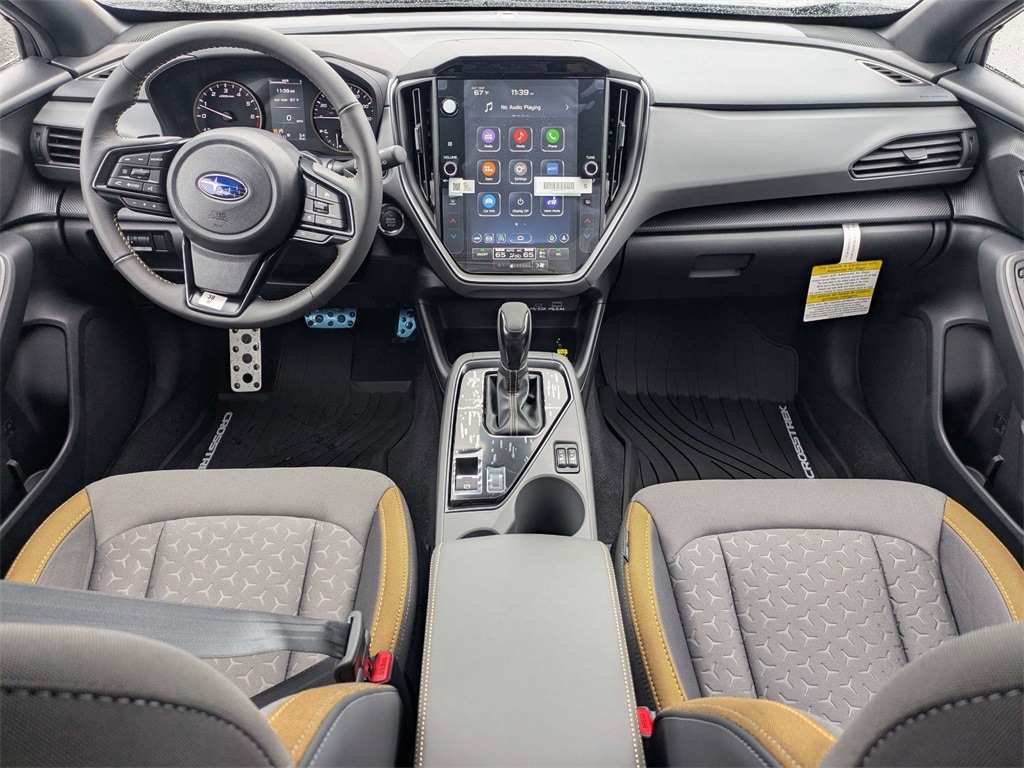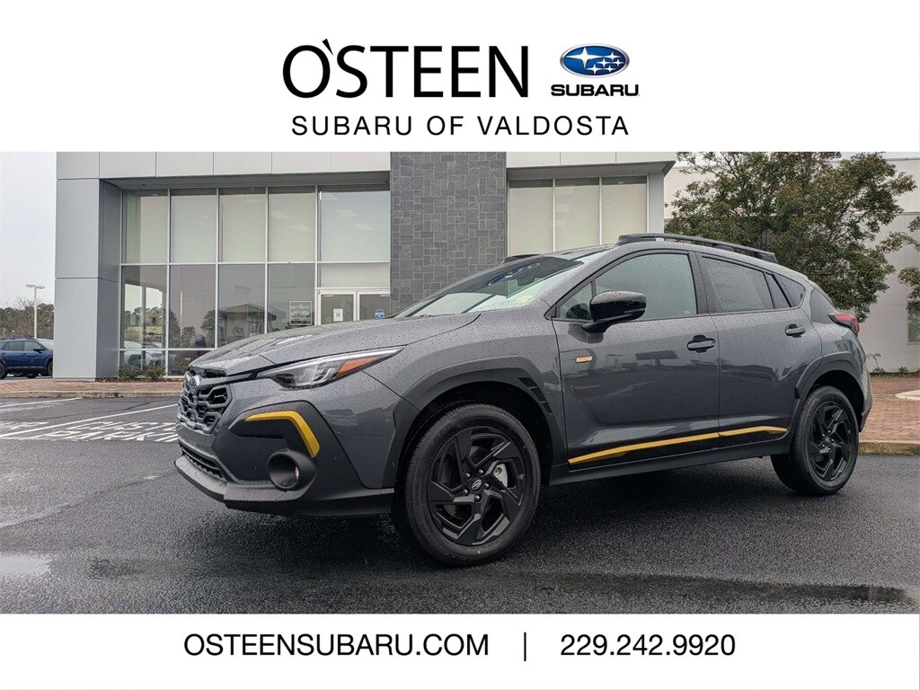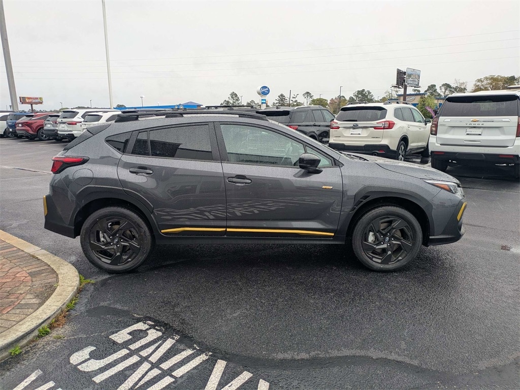 AWD 4-Wheel Disc Brakes, 6 Speakers, ABS brakes, Air Conditioning, All-Weather Floor Liners, Alloy wheels, AM/FM radio: SiriusXM with 360L, Anti-whiplash front head restraints, Auto High-beam Headlights, Auto-Dimming Exterior Mirror with Approach Light, Auto-Dimming Mirror with Compass and HomeLink, Automatic temperature control, Brake assist, Bumpers: body-color, Driver door bin, Driver vanity mirror, Dual front impact airbags, Dual front side impact airbags, Electronic Stability Control, Emergency communication system: MySubaru Companion (5-years free), Exterior Parking Camera Rear, Four wheel independent suspension, Front anti-roll bar, Front Bucket Seats, Front Center Armrest, Front dual zone A/C, Front fog lights, Front reading lights, Fully automatic headlights, Heated door mirrors, Heated Front Bucket Seats, Heated front seats, Illuminated entry, Knee airbag, Leather Shift Knob, Leather steering wheel, LED Upgrade, Low tire pressure warning, Occupant sensing airbag, Outside temperature display, Overhead airbag, Overhead console, Panic alarm, Passenger door bin, Passenger vanity mirror, Popular Package #3A, Power door mirrors, Power steering, Power windows, Radio data system, Radio: Subaru 11.6" Multimedia Plus System, Rear anti-roll bar, Rear Bumper Cover, Rear seat center armrest, Rear Seatback Protector, Rear side impact airbag, Rear window defroster, Rear window wiper, Remote keyless entry, Security system, Speed control, Speed-sensing steering, Split folding rear seat, Spoiler, Sport Cloth Upholstery, Standard Model, Steering wheel mounted audio controls, Tachometer, Telescoping steering wheel, Tilt steering wheel, Traction control, Trip computer, Turn signal indicator mirrors, Variably intermittent wipers, Wheels: 18" x 7.0" J Dark Gray Aluminum-Alloy. 2026 Subaru Crosstrek Sport