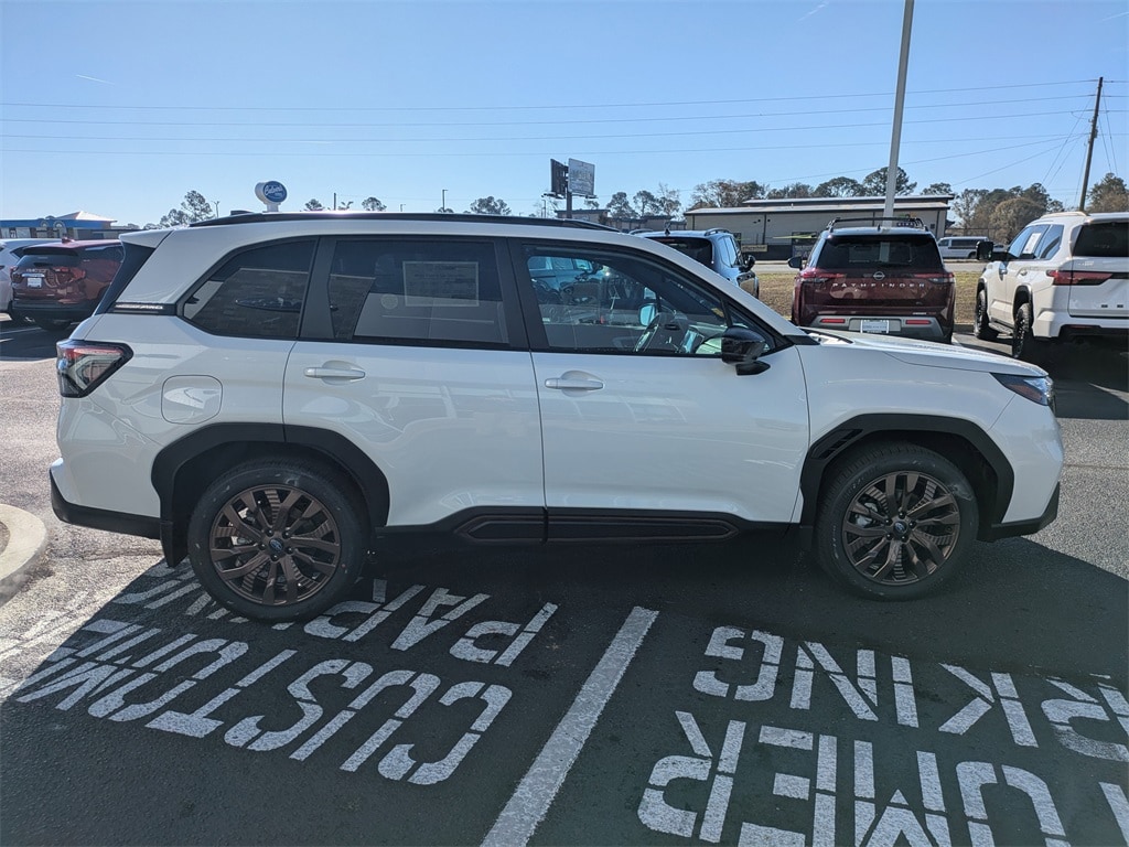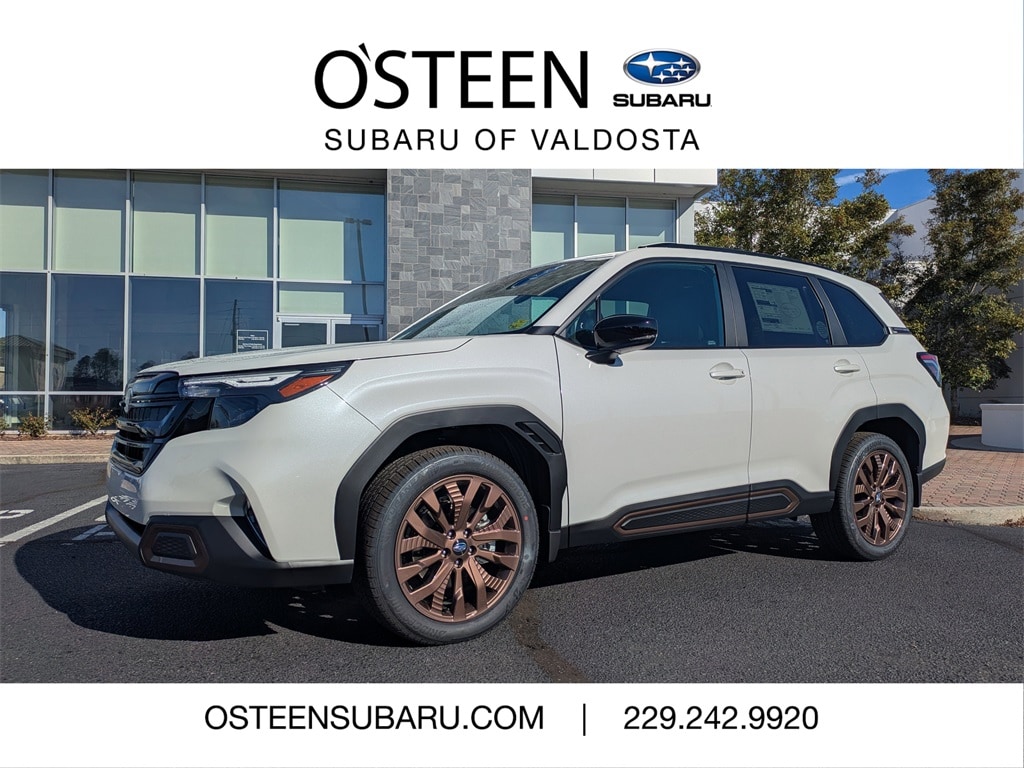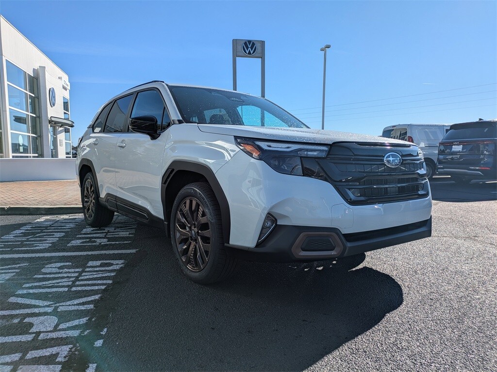 AWD 4-Wheel Disc Brakes, 6 Speakers, ABS brakes, Air Conditioning, Alloy wheels, AM/FM radio: SiriusXM with 360L, Anti-whiplash front head restraints, Auto High-beam Headlights, Automatic temperature control, Brake assist, Bumpers: body-color, Driver door bin, Driver vanity mirror, Dual front impact airbags, Dual front side impact airbags, Electronic Stability Control, Emergency communication system: MySubaru Companion (5-years free), Exterior Parking Camera Rear, Four wheel independent suspension, Front anti-roll bar, Front Bucket Seats, Front Center Armrest, Front dual zone A/C, Front fog lights, Front reading lights, Fully automatic headlights, Heated door mirrors, Heated Front Bucket Seats, Heated front seats, Illuminated entry, Knee airbag, Leather steering wheel, Low tire pressure warning, Occupant sensing airbag, Outside temperature display, Overhead airbag, Overhead console, Panic alarm, Passenger door bin, Passenger vanity mirror, Power door mirrors, Power driver seat, Power moonroof: Panoramic, Power steering, Power windows, Radio data system, Radio: Subaru 11.6" Multimedia Plus System, Rear anti-roll bar, Rear seat center armrest, Rear window defroster, Rear window wiper, Remote keyless entry, Security system, Speed control, Speed-sensing steering, Split folding rear seat, Spoiler, Sport StarTex Upholstery, Steering wheel mounted audio controls, Tachometer, Telescoping steering wheel, Tilt steering wheel, Traction control, Trip computer, Turn signal indicator mirrors, Variably intermittent wipers, Wheels: 19" x 7.5 J Bronze Finish Aluminum-Alloy. 2026 Subaru Forester Sport