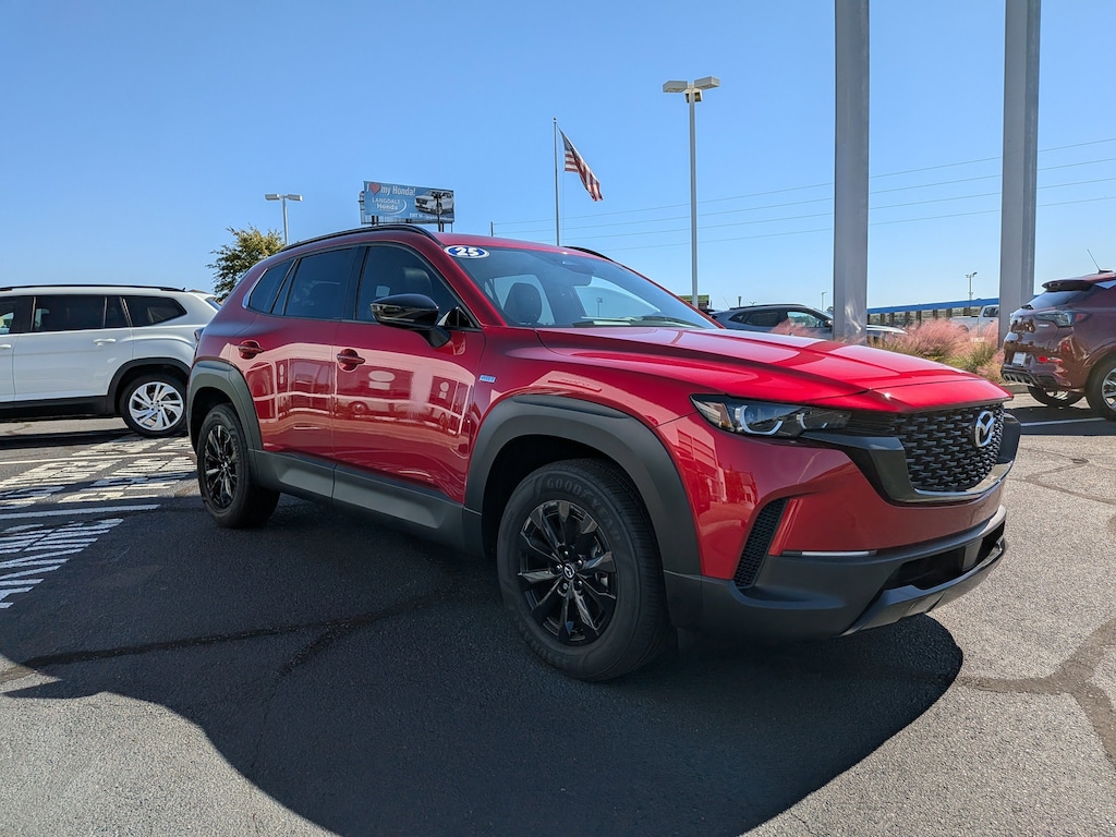 2025 Mazda CX-50 Hybrid Premium CLEAN CARFAX, NO ACCIDENTS, ONE OWNER, 2.5L 4-Cylinder, 12 Speakers, 4-Wheel Disc Brakes, ABS brakes, Air Conditioning, All-Weather Floor Mats, Alloy wheels, AM/FM radio: SiriusXM, AppLink/Apple CarPlay and Android Auto, Auto High-beam Headlights, Auto-dimming Rear-View mirror, Automatic temperature control, Brake assist, Bumpers: body-color, Cargo Liner w/Seatback Protection, Delay-off headlights, Driver door bin, Driver vanity mirror, Dual front impact airbags, Dual front side impact airbags, Electronic Stability Control, Emergency communication system: MAZDA CONNECT, Exterior Parking Camera Rear, Frameless Auto-Dimming Rearview Mirror w/HomeLink, Front anti-roll bar, Front Bucket Seats, Front Center Armrest, Front dual zone A/C, Front reading lights, Front wheel independent suspension, Fully automatic headlights, Heated door mirrors, Heated front seats, Heated Front Seats w/3 Level Adjustment, Illuminated entry, Knee airbag, Leather Seat Trim, Leather Shift Knob, Leather steering wheel, Low tire pressure warning, Memory seat, Occupant sensing airbag, Outdoor Adventure Backpack Kit, Outside temperature display, Overhead airbag, Overhead console, Panic alarm, Passenger door bin, Passenger vanity mirror, Power door mirrors, Power driver seat, Power Liftgate, Power moonroof, Power passenger seat, Power steering, Power windows, Radio data system, Radio: AM/FM/HD Bose 12-Speaker Audio Sound System, Rain sensing wipers, Rear seat center armrest, Rear window defroster, Rear window wiper, Remote keyless entry, Roadside Assistance Kit, Soul Red Crystal Metallic Paint Charge, Speed control, Speed-sensing steering, Split folding rear seat, Spoiler, Steering wheel mounted audio controls, Tachometer, Telescoping steering wheel, Tilt steering wheel, Traction control, Trip computer, Turn signal indicator mirrors, Variably intermittent wipers, Weather Package, Wheels: 17" x 7J Black Metallic Finish Alloy.