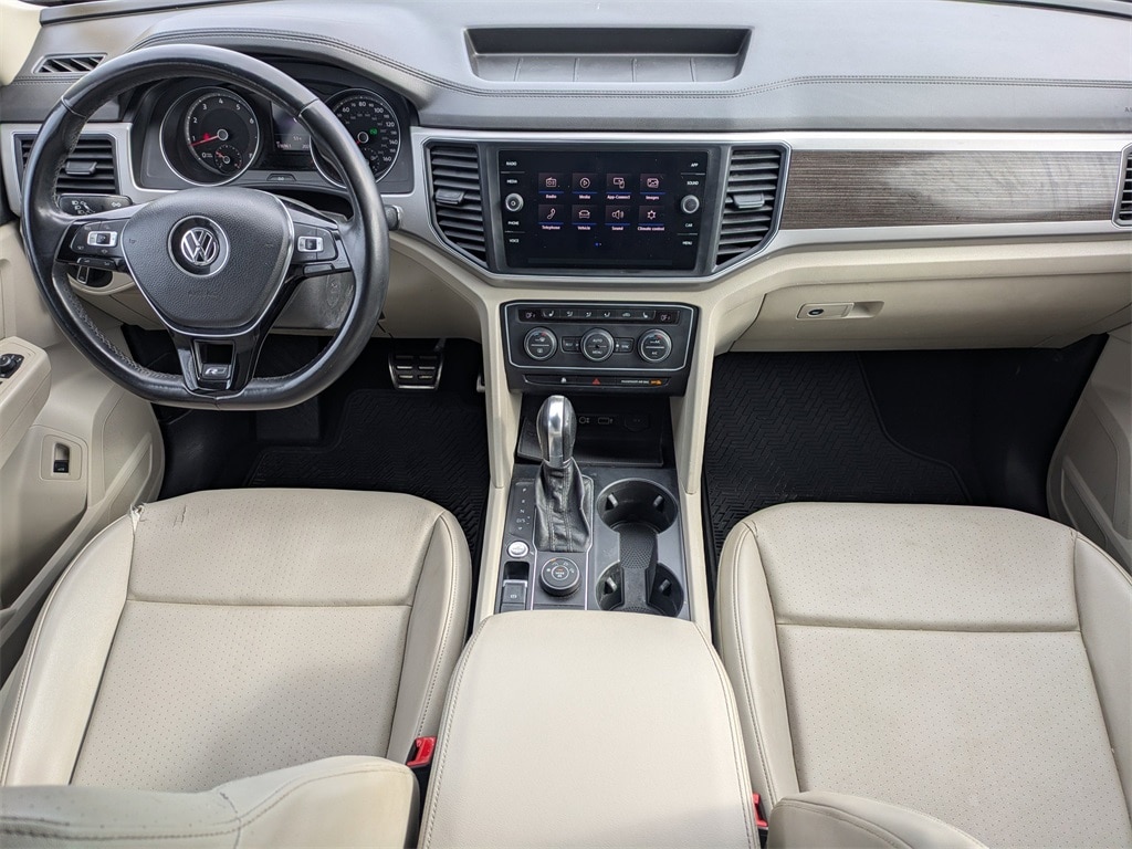 2019 Volkswagen Atlas 3.6L V6 SE R-Line ONE OWNER, 20" Twin 5-Spoke Alloy Wheels, 3.60 Axle Ratio, 3rd row seats: split-bench, 4-Wheel Disc Brakes, 8 Speakers, ABS brakes, Active Blind Spot Monitor, Air Conditioning, Alloy wheels, AM/FM radio: SiriusXM, Auto-dimming Rear-View mirror, Automatic temperature control, Brake assist, Bumpers: body-color, Compass, Delay-off headlights, Driver door bin, Driver vanity mirror, Dual front impact airbags, Dual front side impact airbags, Electronic Stability Control, Emergency communication system: VW Car-Net services (capabilities require enrollment or subscription), Exterior Parking Camera Rear, Forward collision: FCW w/Autonomous Emergency Braking mitigation, Four wheel independent suspension, Front anti-roll bar, Front Bucket Seats, Front Center Armrest, Front dual zone A/C, Front fog lights, Front reading lights, Heated Comfort Front Bucket Seats, Heated door mirrors, Heated front seats, Illuminated entry, Low tire pressure warning, Occupant sensing airbag, Outside temperature display, Overhead airbag, Overhead console, Panic alarm, Passenger door bin, Passenger vanity mirror, Power door mirrors, Power driver seat, Power Liftgate, Power steering, Power windows, Radio data system, Radio: Composition Media 8.0" Touchscreen, Rain sensing wipers, Rear air conditioning, Rear anti-roll bar, Rear reading lights, Rear seat center armrest, Rear window defroster, Rear window wiper, Remote CD player, Remote keyless entry, Roof rack: rails only, Security system, Speed control, Speed-sensing steering, Split folding rear seat, Spoiler, Standard Suspension, Steering wheel mounted audio controls, Tachometer, Telescoping steering wheel, Tilt steering wheel, Traction control, Trip computer, Turn signal indicator mirrors, V-Tex Leatherette Seating Surfaces, Variably intermittent wipers. R-Line
