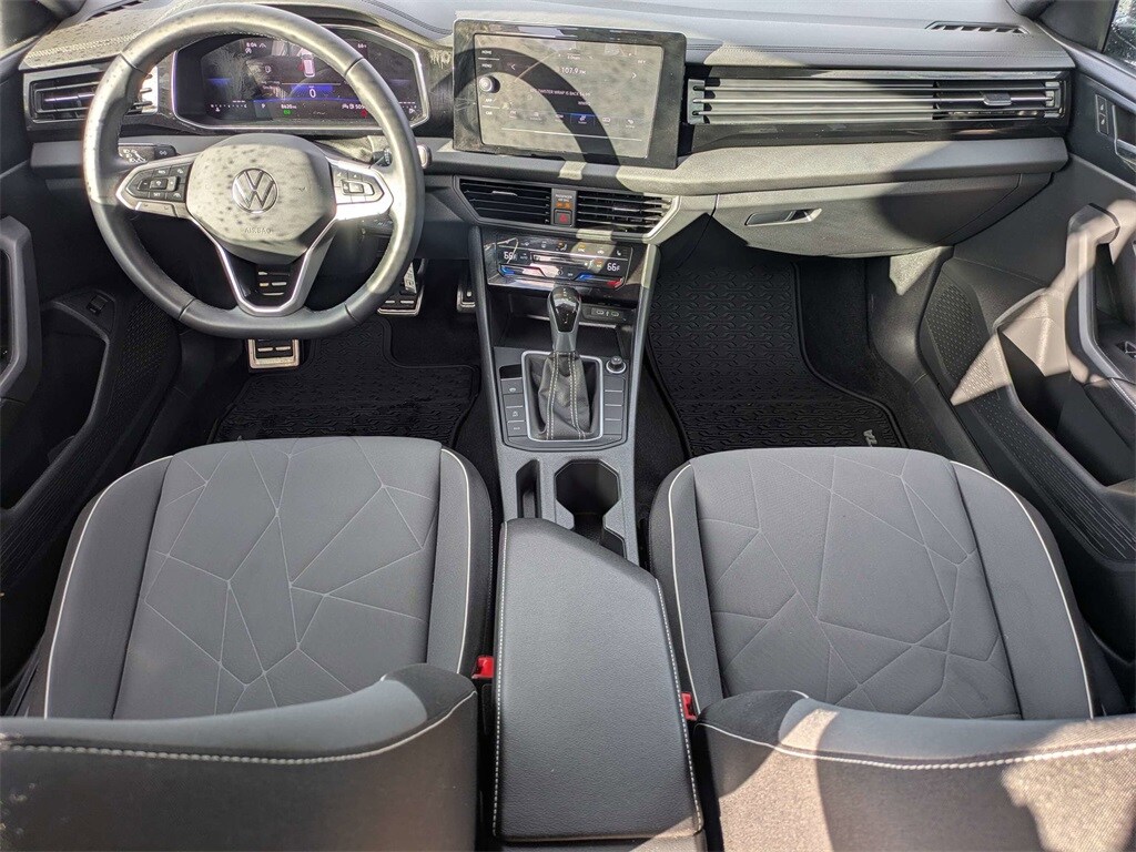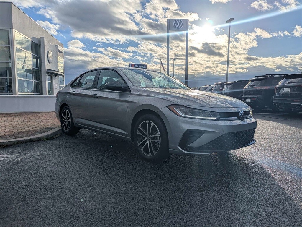 2025 Volkswagen Jetta 1.5T Sport CERTIFIED PRE-OWNED, CLEAN CARFAX, NO ACCIDENTS, ONE OWNER, Jetta 1.5T Sport, Volkswagen Certified Pre-Owned Certified, 1.5L I-4 DI DOHC Turbocharged, Pyrite Silver Metallic, Black Cloth, 4 Speakers, 4-Wheel Disc Brakes, ABS brakes, Active Blind Spot Monitor, Air Conditioning, Alloy wheels, Auto-dimming Rear-View mirror, Auto-Dimming Rearview Mirror w/HomeLink Connect, Automatic temperature control, Brake assist, Bumpers: body-color, Cloth Seat Trim, Delay-off headlights, Driver door bin, Driver vanity mirror, Dual front impact airbags, Dual front side impact airbags, Electronic Stability Control, Emergency communication system: VW Car-Net Safe & Secure 5-year, Exterior Parking Camera Rear, First Aid Kit, Front anti-roll bar, Front Bucket Seats, Front Center Armrest, Front dual zone A/C, Front wheel independent suspension, Fully automatic headlights, Heated door mirrors, Heated Front Seats, Heated front seats, Heavy Duty Trunk Liner w/VW CarGo Blocks, Illuminated entry, Leather Shift Knob, Leather steering wheel, Low tire pressure warning, Occupant sensing airbag, Outside temperature display, Overhead airbag, Overhead console, Panic alarm, Passenger door bin, Passenger vanity mirror, Power door mirrors, Power steering, Power windows, Radio data system, Radio: MIB3 Composition Color w/8" Touchscreen, Rain sensing wipers, Rear anti-roll bar, Rear reading lights, Rear seat center armrest, Rear window defroster, Remote keyless entry, Roadside Assistance Kit, Rubber Monster Mats Kit (Set of 4), Speed control, Speed-sensing steering, Split folding rear seat, Steering wheel mounted audio controls, Tachometer, Telescoping steering wheel, Tilt steering wheel, Traction control, Trip computer, Variably intermittent wipers, VW Care, Wheels: 17" 2-Tone Machined Alloy, Jetta 1.5T Sport, 1.5L I-4 DI DOHC Turbocharged, Pyrite Silver Metallic, Black Cloth.